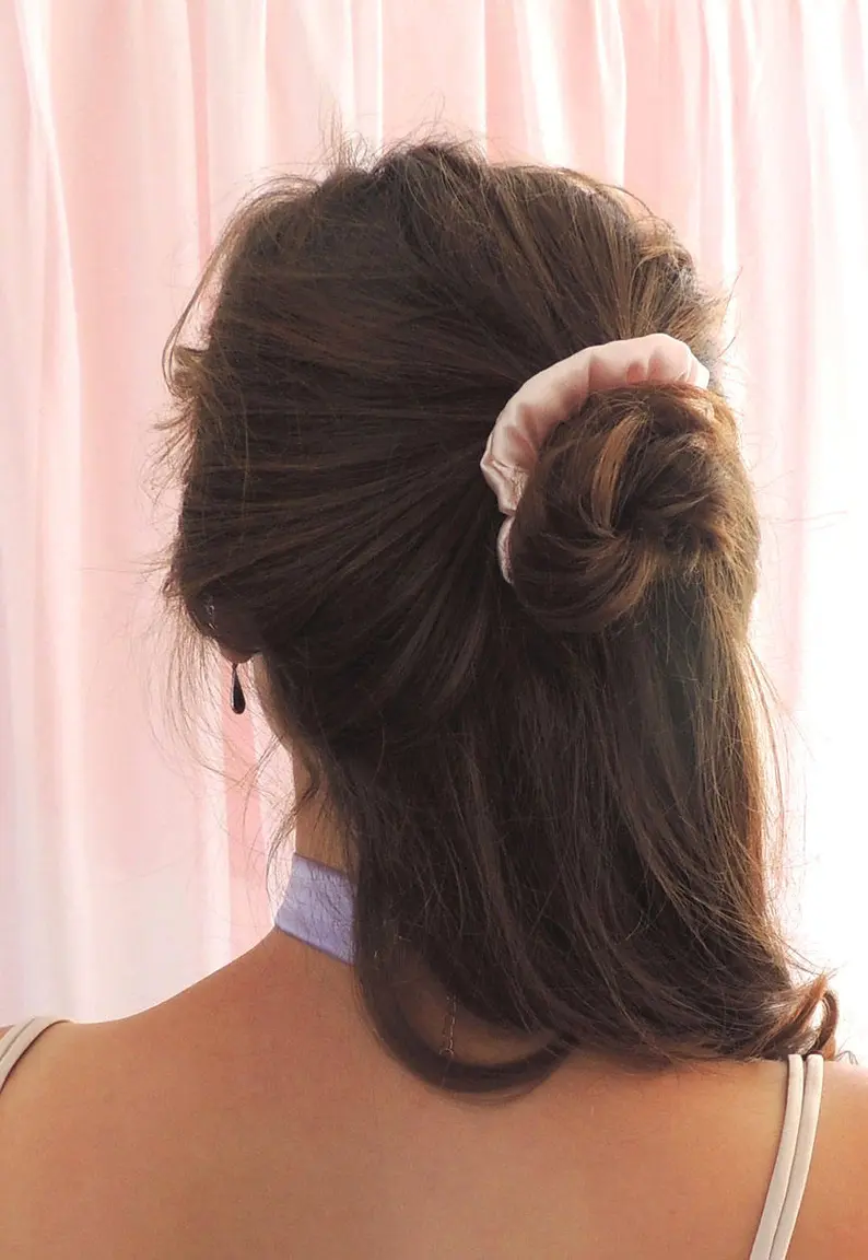 - “Soft, stylish, and sustainable—these mini scrunchies are handmade with love for your everyday hair needs.”