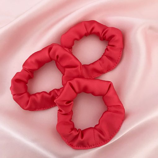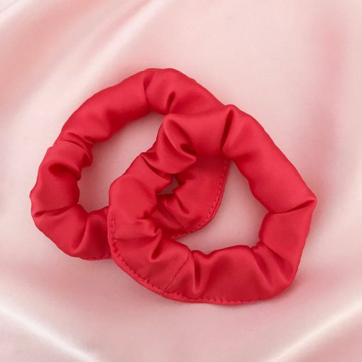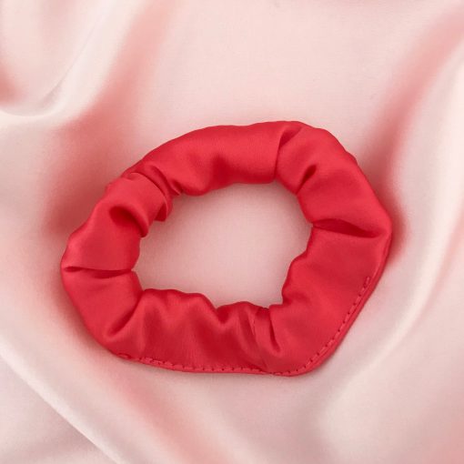 Mini silk satin scrunchie in shell pink ideal for mini hair buns or smaller ponytails. We don’t think the scrunchie ever went out of style but with the 90s making a comeback, silk satin scrunchies are perfect for a retro sportluxe look.