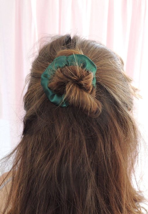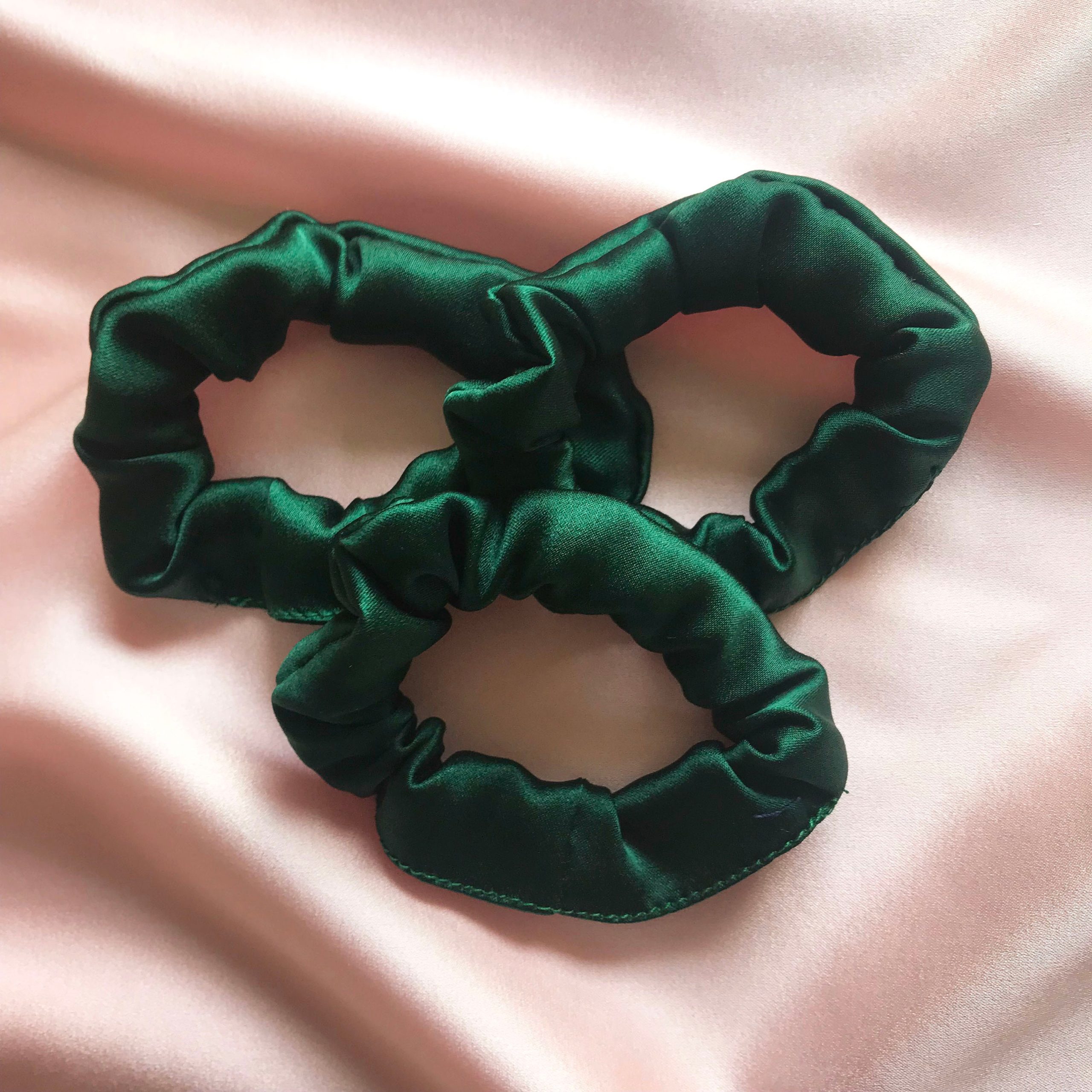 Emerald Green Silk Satin Mini Hair Scrunchie